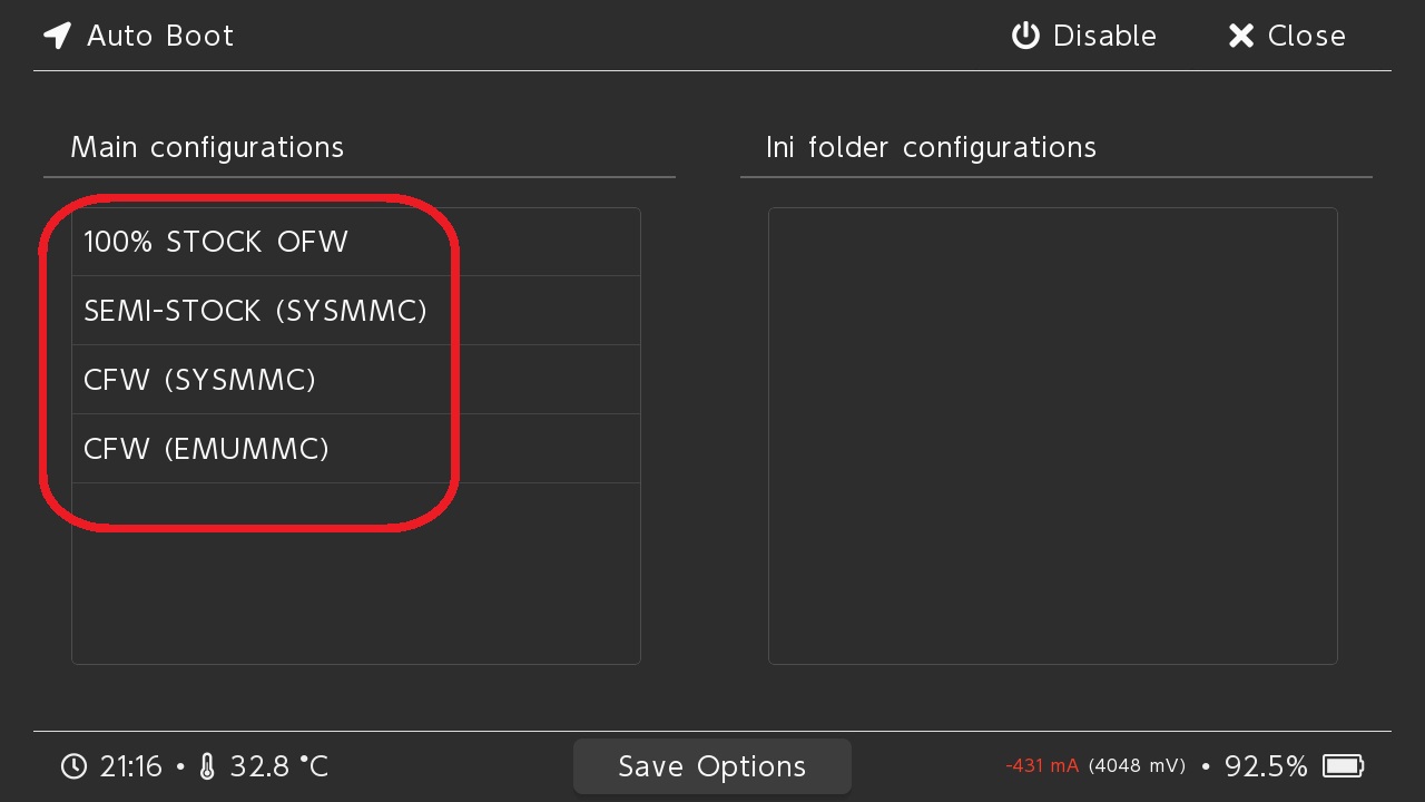 Az én gépeimen általában csak az OFW és emuMMC CFW van megadva.