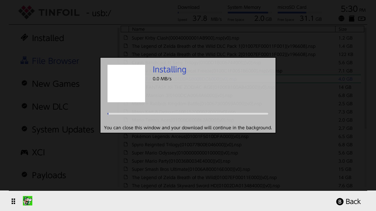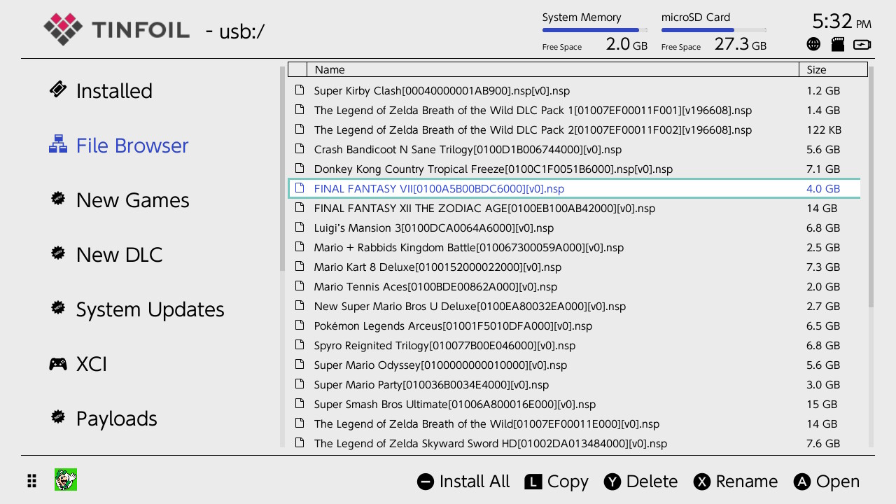 Tehát pl. a Zelda esetében 13,4GB az .nsp és a switchen foglalt helye is ugyan ekkora, vagyis összesen 26,8GB szabad hely kell (az .nsp file természetesen a művelet után törölhető).